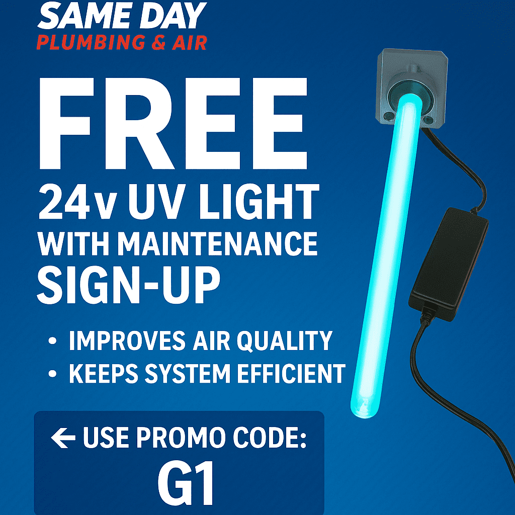 Palmetto HVAC Upgrade Offer: 0% Interest + FREE UV Light + 1 Year of Maintenance If you’ve been thinking about replacing your old air conditioner, there’s no better time than now. At Same Day Plumbing & Air, we’re making it easier than ever to upgrade your comfort — with 0% interest and some incredible bonuses. […]